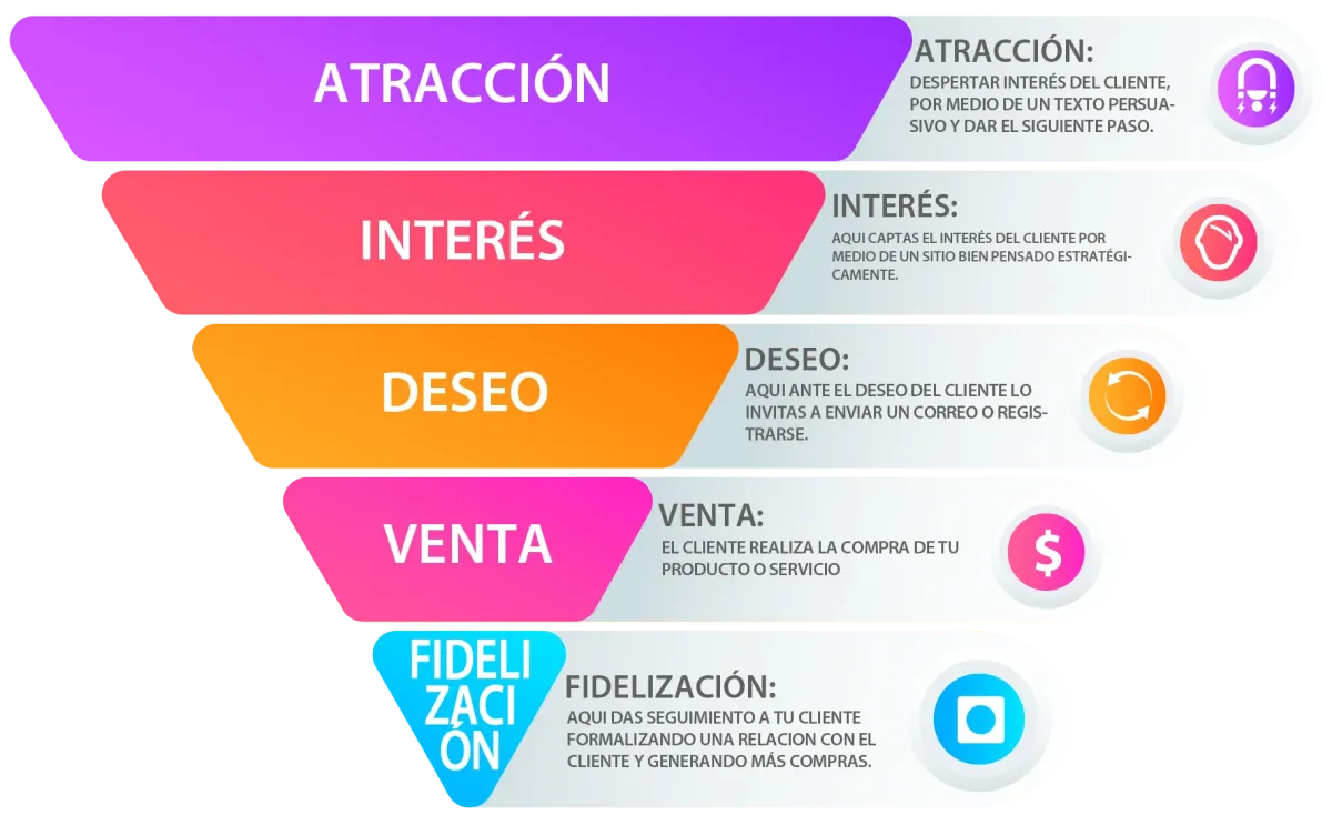 Un embudo de ventas guía a tus clientes a través de etapas específicas hasta concretar la compra:
